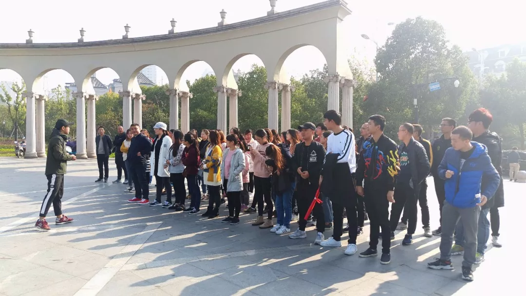 周日的早上迎著沐浴著熹微的晨光,大家開始在公司樓下聚集。集合后,大部隊終于浩浩蕩蕩的向此行目的地進發----臨平天都城四季公園-法國小鎮。